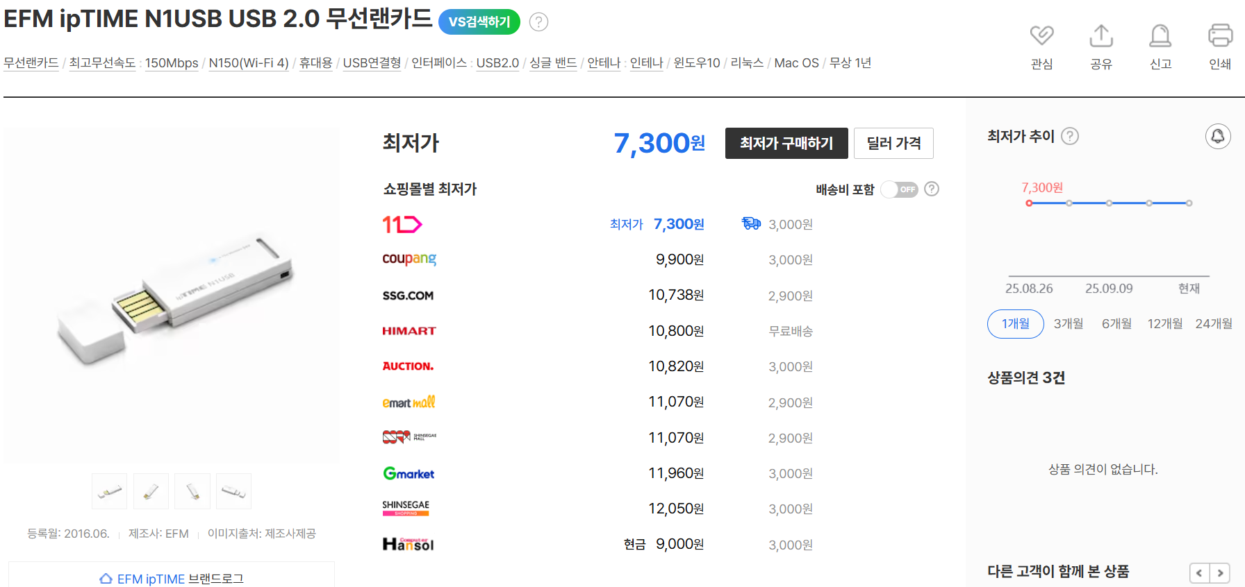 [다나와] EFM ipTIME N1USB USB 2.0 무선랜카드